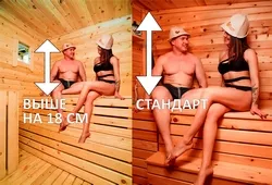 Увеличение высоты потолка необходимо, когда рост парящихся людей выше 180 см.
