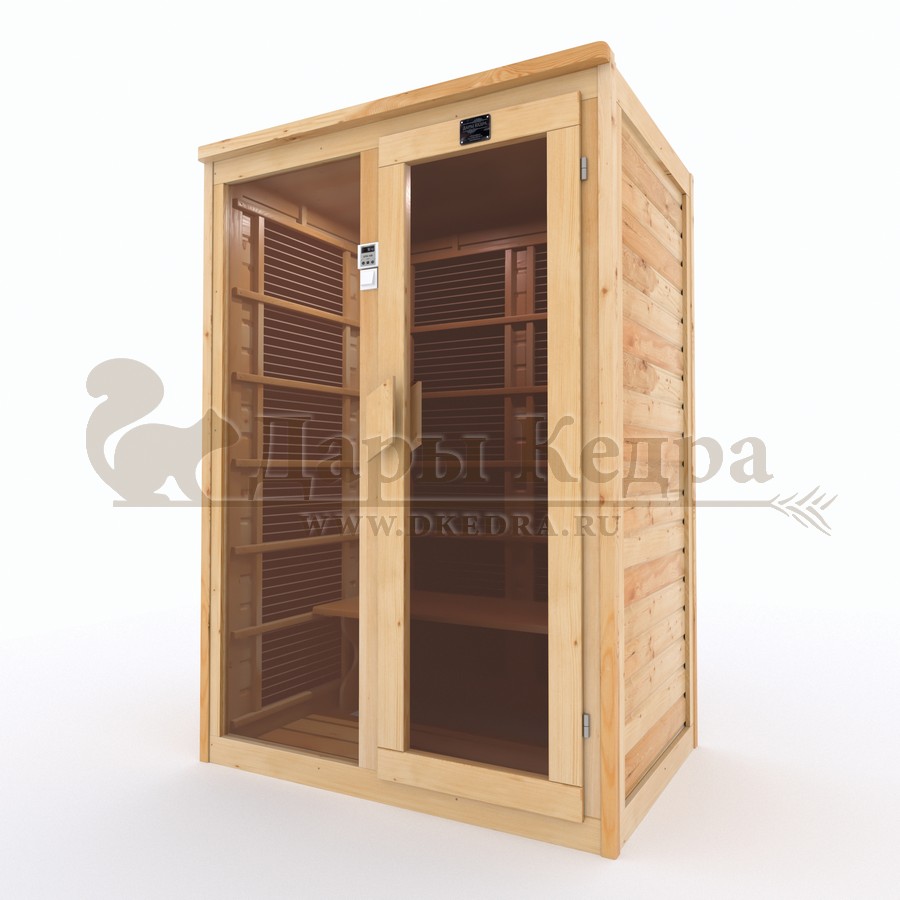 Это специально оборудованная кедровая кабина для прогрева тела человека сухим теплом. Воздух в таких парных не нагревается. Инфракрасные лучи воздействуют на тело, равномерно прогревая мышцы, суставы и органы. Карбоновые излучатели, встроенные в стены кабины, обладают мягким прогревом, что полностью исключает возможность ожога. Работает кабина за счет электричества. Двухместная инфракрасная сауна с карбоновыми излучателями подойдет как для домашнего использования, так и для коммерции.
